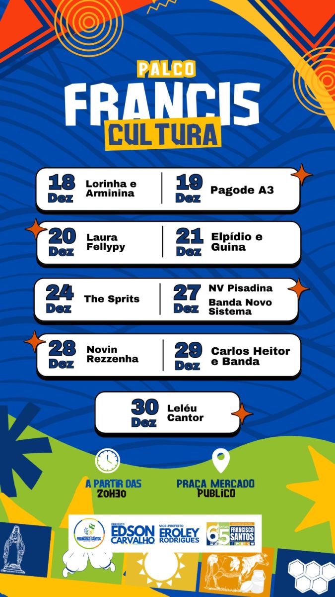 “Estamos comemorando 65 anos de uma história feita com muito trabalho, superação e expectativas de crescimento. Preparamos uma programação que valoriza nossa cultura, incentiva o esporte, fortalece a fé e promove a união das famílias francisco-santenses”, afirmou o prefeito.
